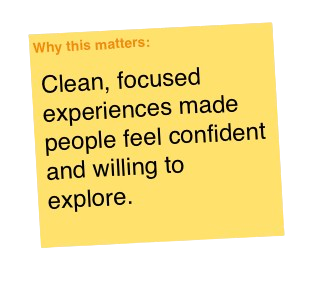 Complex or overly busy surfaces often signaled uncertainty and discouraged deeper use.